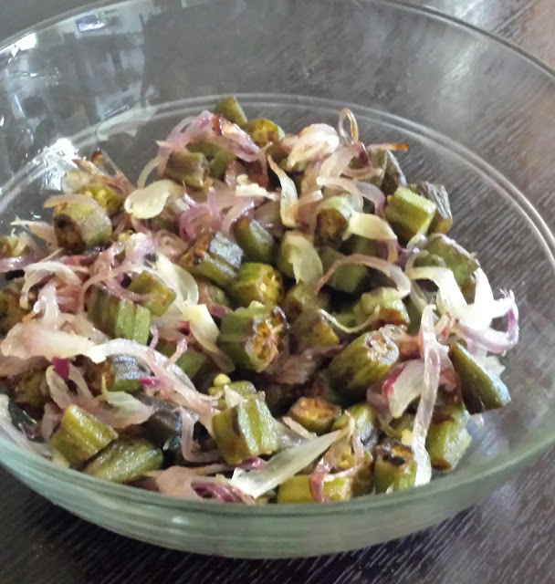 Bhindi or Okra is one vegetable that I can never get tired of. I love it! Earlier I used to make it often for the kids, as bhindi was one veggie that they had happily without making a fuss.I continue to make it still as I enjoy it so much. Served with rice and dal or with chapatis, bhindi is a favourite always.